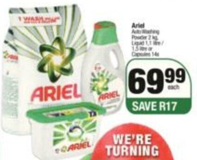Ariel Auto Washing Powder 2kg Liquid 1 1l 1 5l Or Capsules Offer At Superspar